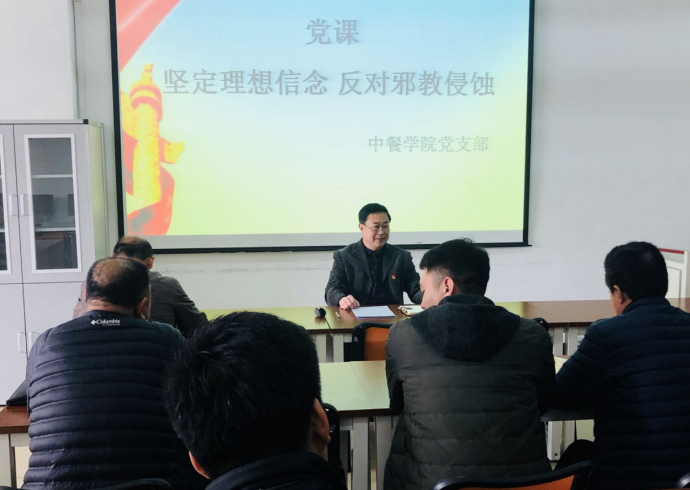 中餐学院开展“坚定理想信念 反对邪教侵蚀”党课活动 为进一步增强党性修养,坚定理想信念,3月28日,工会主席王吉林同志为中餐学院党支部全体党员上了一堂“坚定理想信念 反对邪教侵蚀”的主题党课。 王吉林同志结合习近平总书记在京主持召开学校思想政治理论课教师座谈会上发表的重要讲话,...