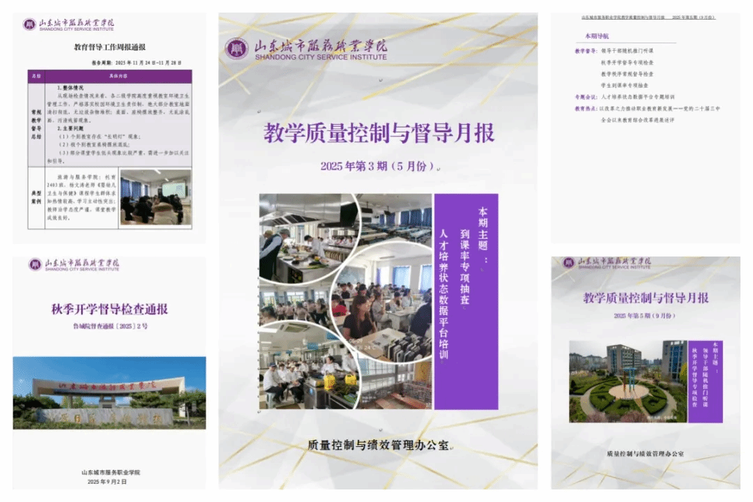二是常态检查“勤体检”,让问题无处遁形。质量控制与绩效管理办公室坚持执行每周例行督导机制,聚焦教学秩序、学生到课率、实训室安全等核心环节,累计开展各类专项督查70余次。对发现的问题建立“即查即馈”机制,并通过编制发布《教学督导与质量控制周报/月报》《教学督导检查通报》20余期,形成常态化的质量监测、反馈与预警闭环,有效提升了教学过程的规范性与严谨度。