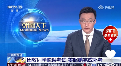 【央视13新闻频道】朝闻天下:因救同学耽误考试 姜昭鹏完成补考