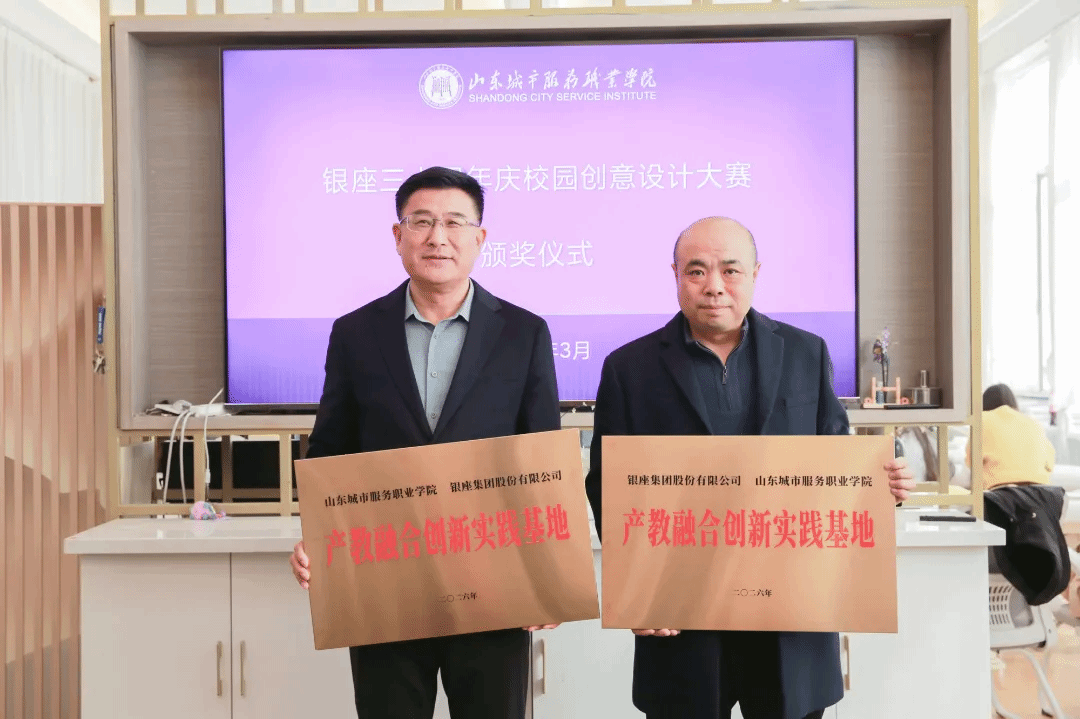 典礼上,学院与银座集团共同打造的“产教融合创新实践基地”正式揭牌成立。这标志着鲁商集团旗下校企双方的协同合作迈入了资源互通、常态共建、深度融合的全新阶段。
