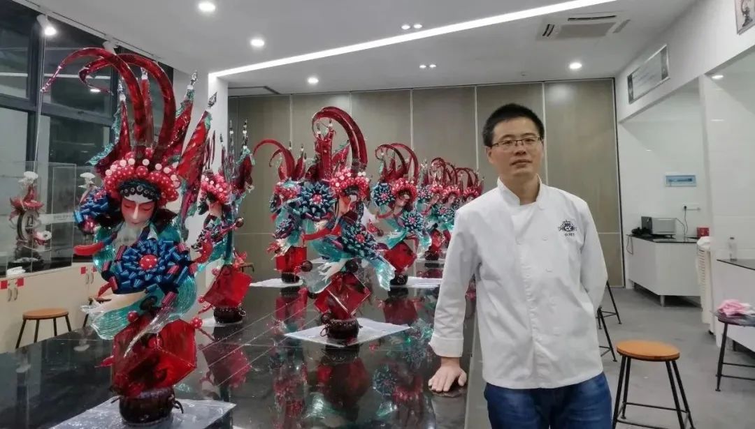 晶莹剔透、质若琉璃,蝴蝶在彩带上仿佛正轻轻扇动翅膀,甜蜜的香气扑鼻而来,很难想象这样一座精美的艺术品,在六个小时前仅是一锅粘稠的糖浆。谈到制作糖艺的秘诀,王亮认为是“心手眼合一,方寸显绝技”。有着雕刻功底的王亮,对造型设计有着许多的奇思妙想,他借鉴西方的做糖工艺,同时融入当下流行的国潮元素,制作出来一系列惟妙惟肖、栩栩如生的糖艺摆件,例如“灵魂战车”“刀马旦”等。王亮说,“刀马旦”这个作品的灵感源自中国传统戏曲文化,弘扬东方美学,创作具有中国特色、中国风格、中国气派的作品,是他责无旁贷的使命。