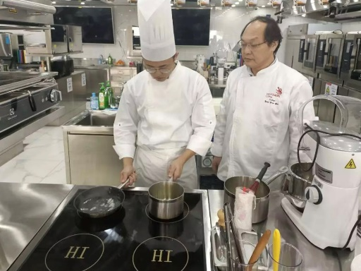谈起丁阳,师傅杨永臻骄傲地竖起大拇指,多年的教导和陪伴让这对师生处成了“父子”,丁阳成绩的背后,也少不了这位“领路人”的悉心教导。杨永臻回忆到,在2020年丁阳参加全国第一届职业技能大赛时,甜品项目的比赛时间马上到了,而丁阳却还没有完成,一旦超时成绩将无效,此时,比赛场上的丁阳望向了场下的杨永臻,杨永臻只用了一个眼神,丁阳就立刻心领神会静下心来,快速沉着冷静地完成了比赛。“陪伴丁阳的时间,比陪伴我儿子的时间还要多。”言语中,充满了杨永臻对丁阳的肯定与期许。